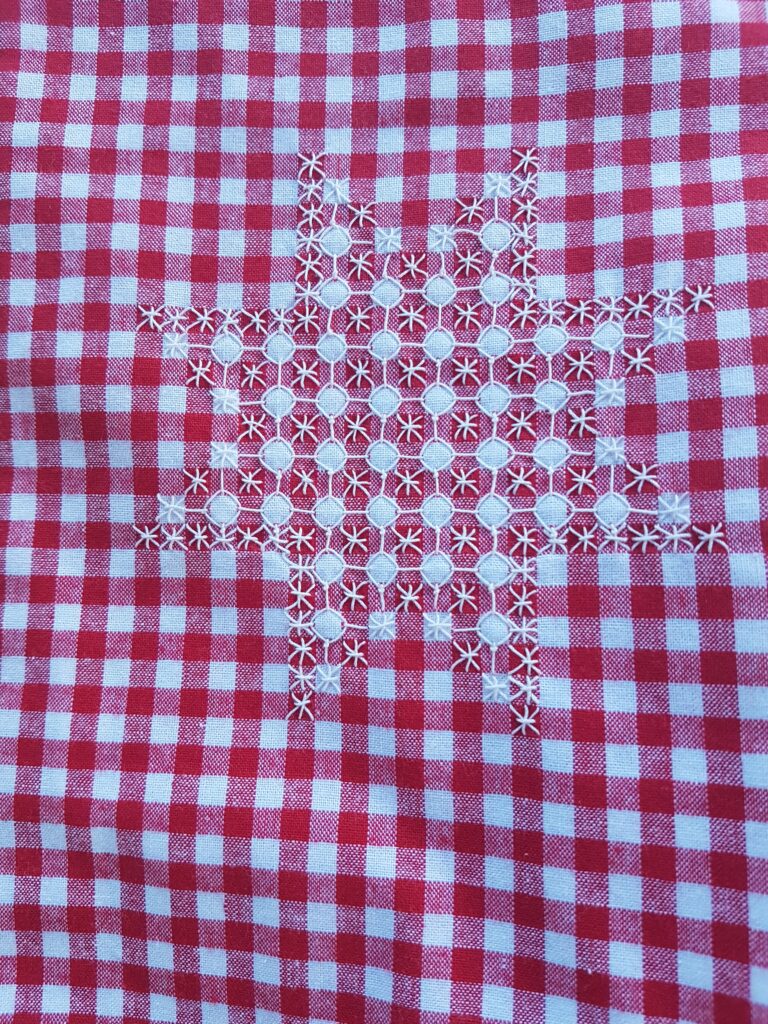 La broderie suisse appartient à la famille des points comptés. Cette technique se réalise sur de la toile de Vichy. Quel que soit le coloris, les points de broderie suisse s’exécutent sur 3 types de carreaux : les clairs, les foncés et les grisés (de couleur intermédiaire).