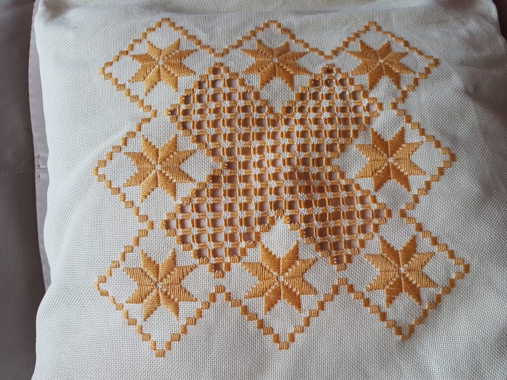 La broderie Hardanger fait partie des techniques de jours à fils tirés. Il s’agit de tirer les fils de tissage et de broder autour des fils restants du tissu pour obtenir des motifs ajourés. En anglais, la méthode des jours à fils tirés est appelée « Drawn thread work ». Elle serait née en Italie et s’est développée en Europe au XVIe siècle.